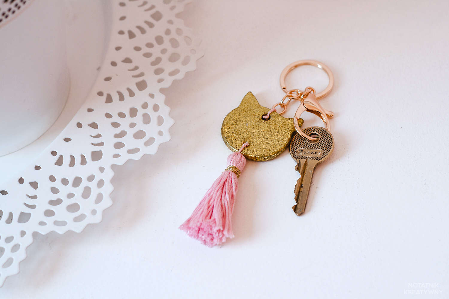 Świetny pomysł na brelok. Wygląda uroczo i złoty kot, to chyba na szczęście :).
